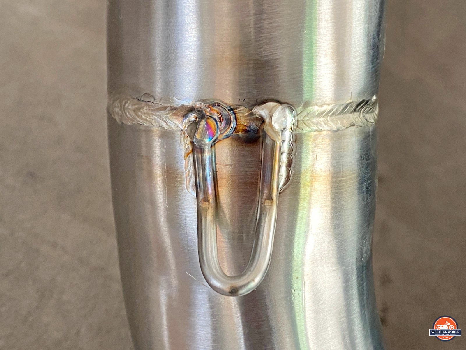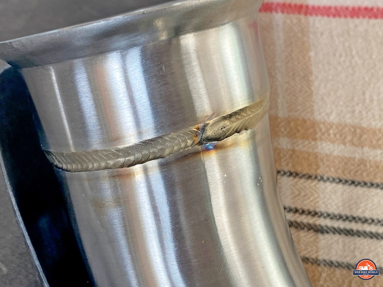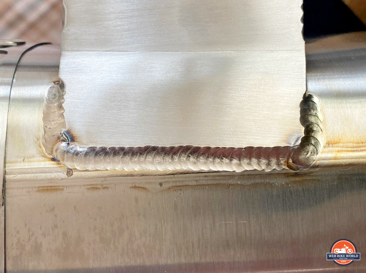 On the backside of the system and out of sight once mounted on the bike the welds are a little bit rougher looking as you can see in the photos below.
