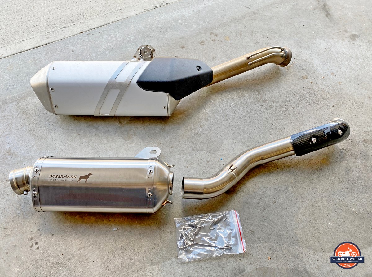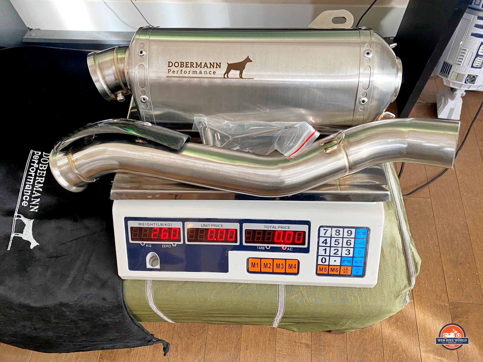 If you prefer a lighter version of this exhaust system it’s available from Dobermann made out of Japanese quality titanium for $675 USD and weighs a claimed 2.3 kg or only 5.07 lbs.