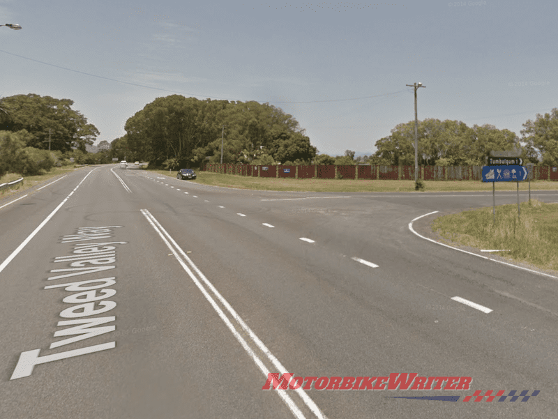 NSW Police say the crash occurred at the intersection of Riverside Drive and Tweed Valley Way in Tumbulgum (pictured above) near Tweed Heads, about 3.20pm on Monday.