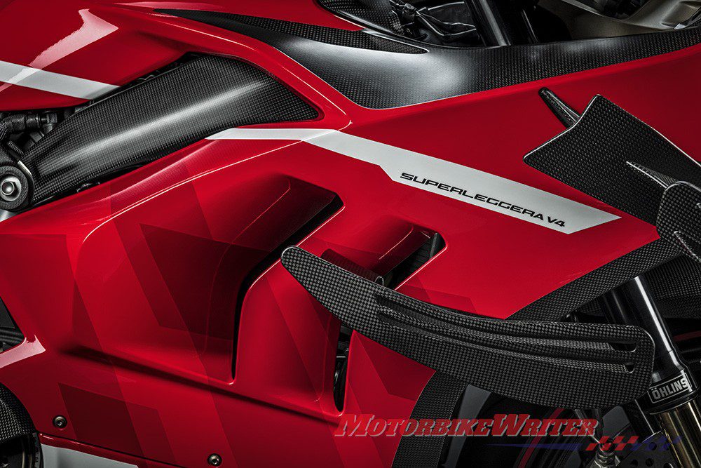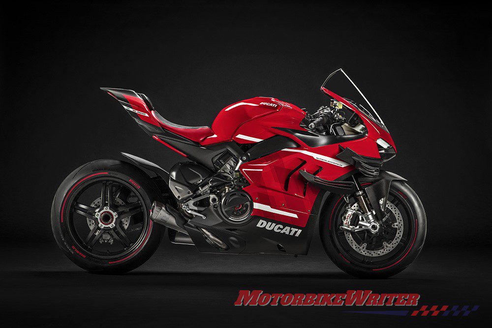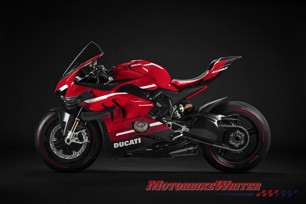 The 159kW (214hp) Superleggera V4, unveiled overnight, is wrapped in exposed carbon-fibre and other exotic materials with a Desmosedici GP19-inspired livery.