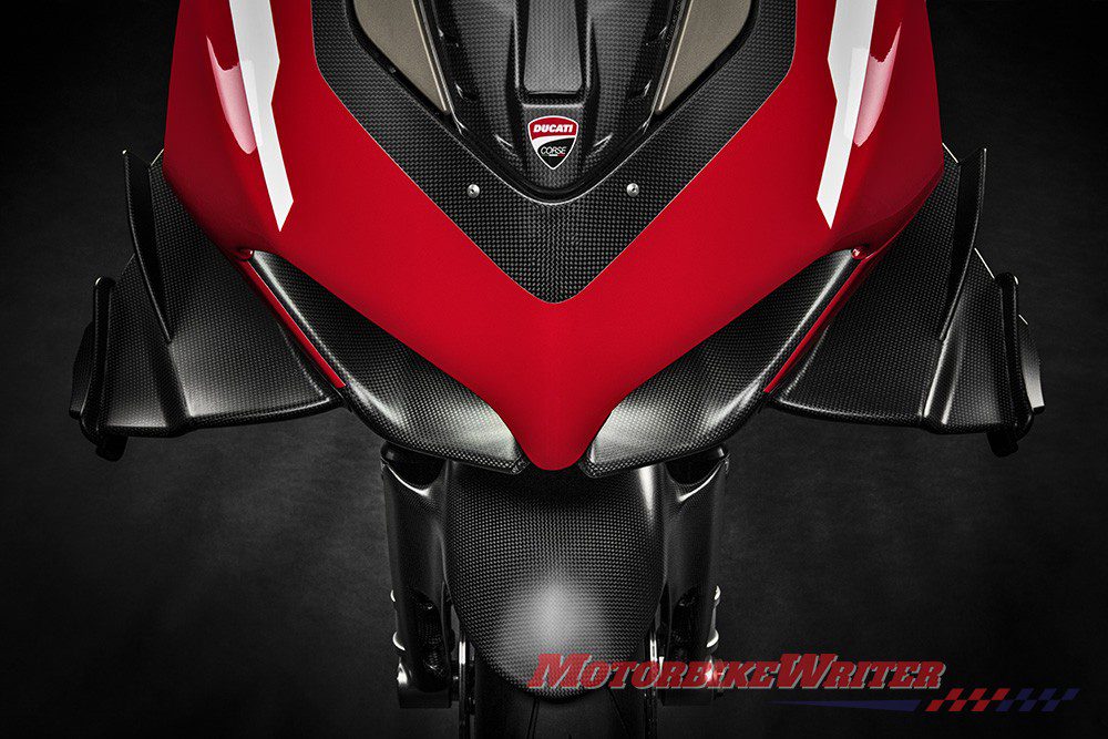 They also claim the carbon fibre fairing with biplane winglets has greater aerodynamic efficiency than the current MotoGP bikes.