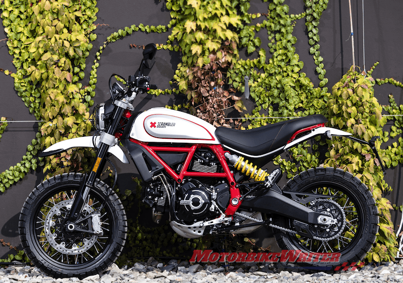 The Scramblers get the same updates as the Icon with Bosch cornering ABS, a fuel gauge, LED daytime running light and indicators, blackened engine, “ergonomic” controls, adjustable brake lever, lighter clutch and the Ducati Multimedia System where riders can listen to their favourite playlists, answer calls or chat with the passenger.