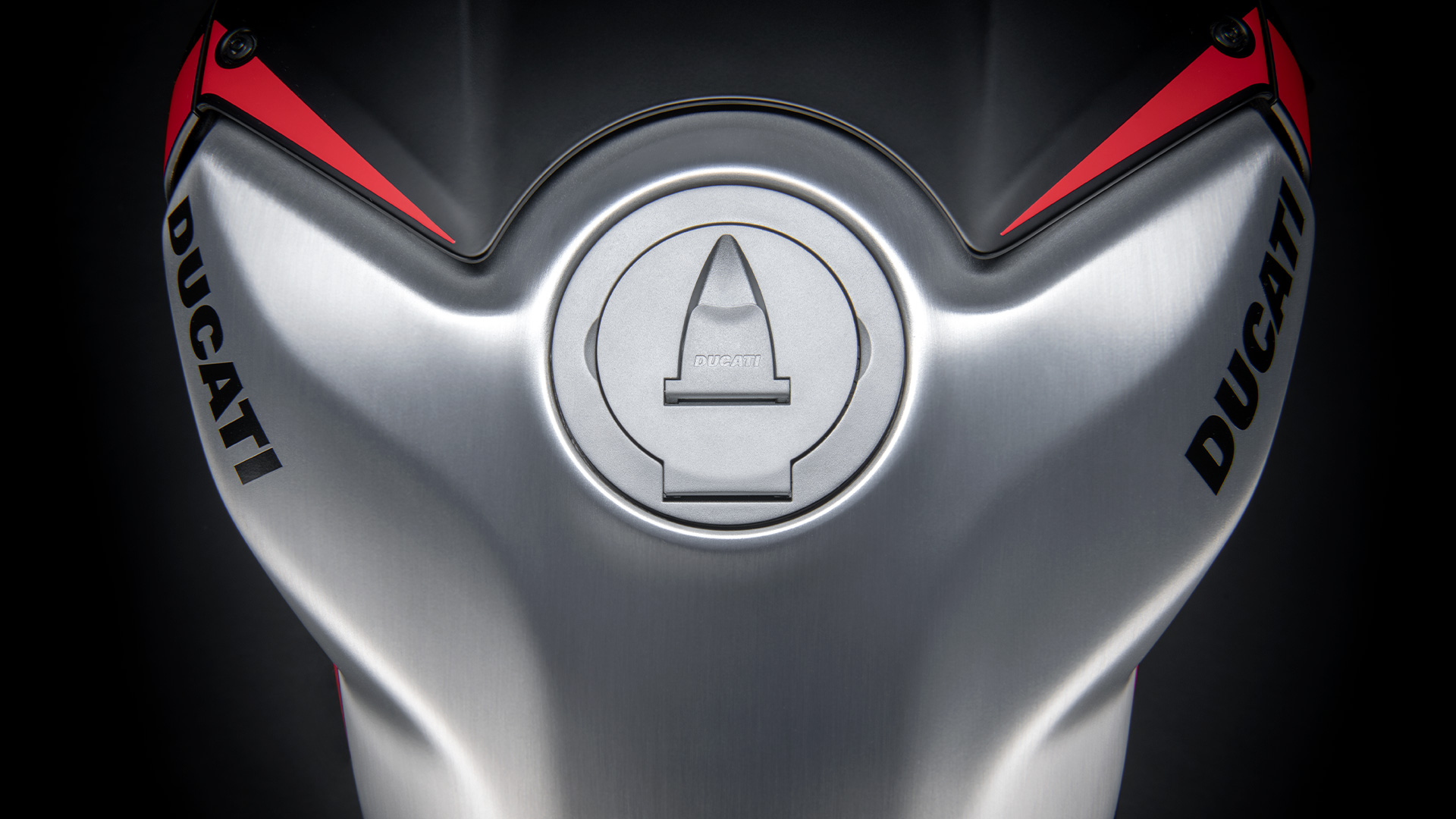 The ‘Winter Test’ livery (apart from looking amazing with that brushed aluminum) was “created by the Centro Stile Ducati and inspired by the Ducati Corse bikes used during the winter MotoGP and WorldSBK winter testing,” showing off what is an extremely attractive brushed aluminum fuel tank.