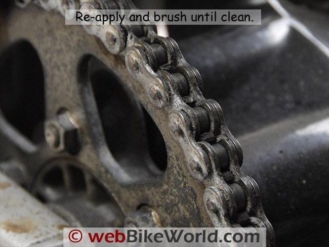 Another issue is clean-up. Several webBikeWorld readers have suggested using one of the so-called “Green” degreasers that are readily available but which aren’t designed specifically for motorcycle chains.
