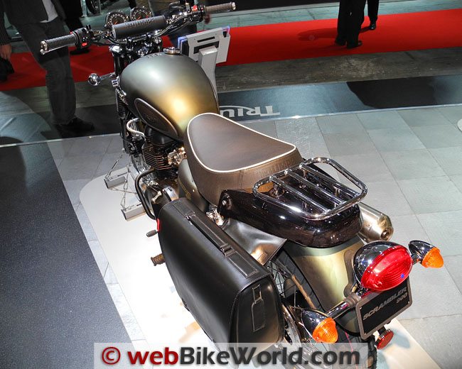 And on the opposite side of the Triumph podium, it was like a ghost town. The still very good-looking and iconic Bonneville was represented in a few new colors for 2011, including an all-white Bonneville SE with an optional Alcantara seat that was looking very nice.