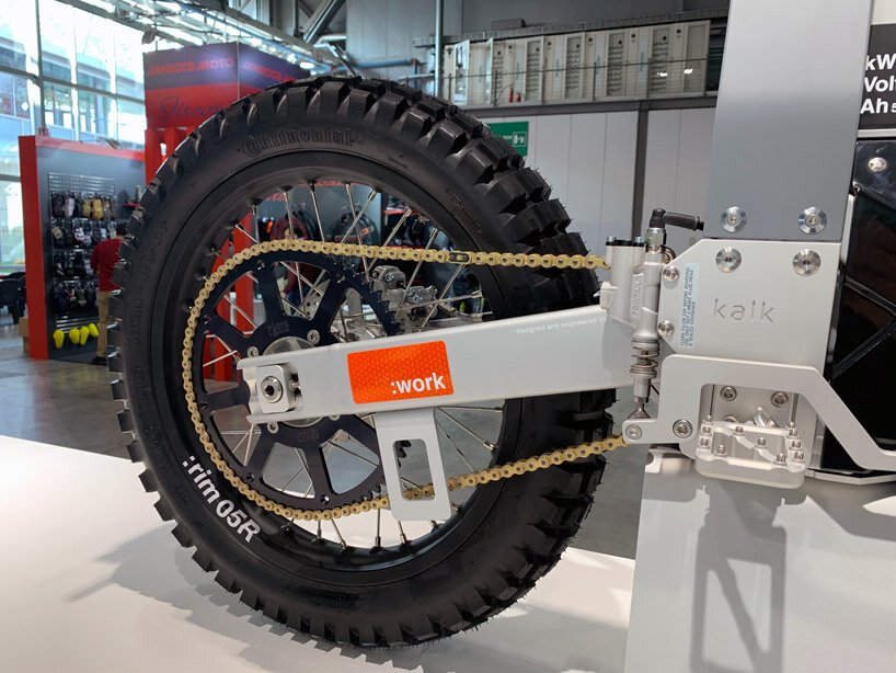 Purported by DesignBoom to be the favorite of American record producer, rapper, singer and songwriter Pharrell Williams, the Kalk features “an off-road platform, made with light and premium components with the goal of creating the fastest and most efficient bike for remote work missions.”