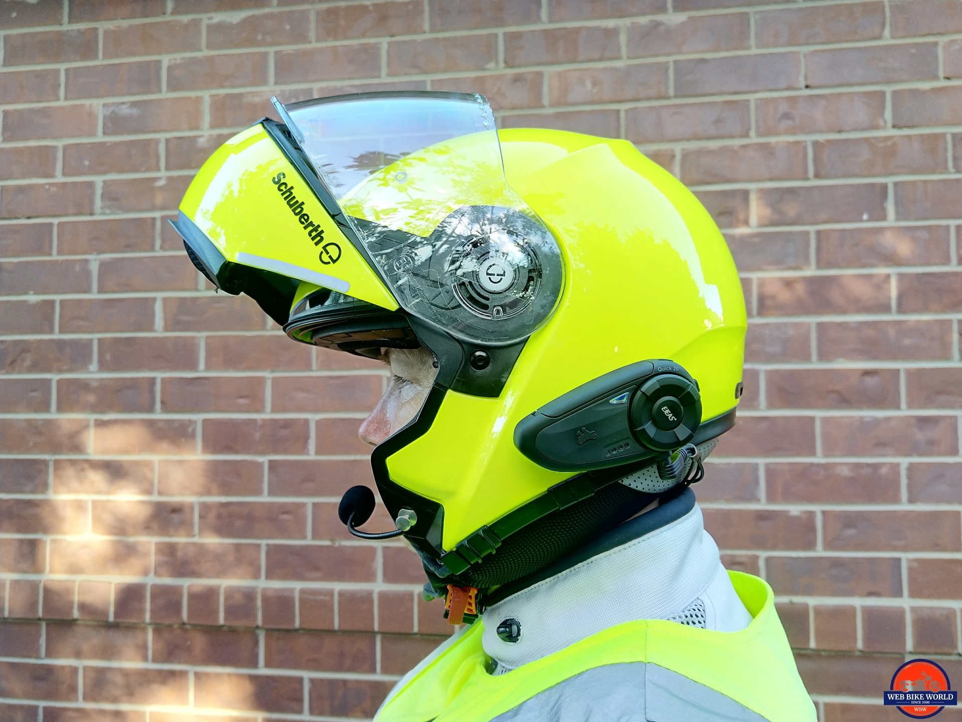 For the Schuberth C3 Pro, there’s nothing complicated here, less having to cope with a boom microphone when closing/opening this uber-quiet versatile modular helmet. The speakers fit nicely into the slightly angled elongated speaker recesses that allow precise speaker and ear alignment.