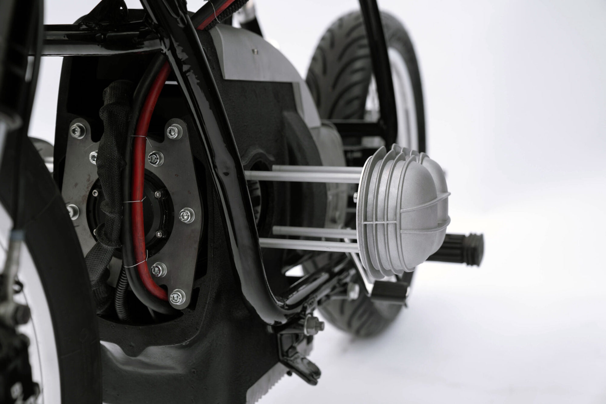 “The experience of riding a custom or vintage motorcycle is more than half the fun, an engine shaking, revving, accelerating and turning heads as you’re strolling around…so we wanted to uphold that excitement while riding an EV motorcycle: shifting, revving, torque and definitely turning heads with some incredible noise!,” enthuses Muis.