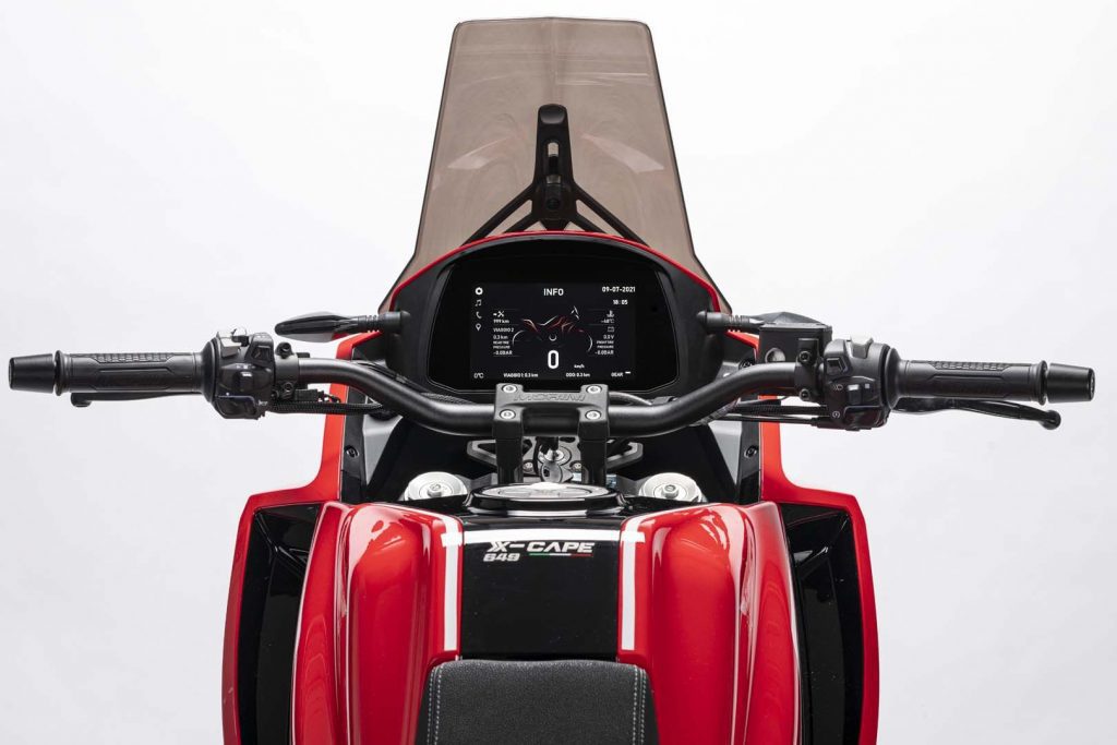 This bike still showcases elements of the Moto Morini brand, the most notable being the rather sharp features of the X-Cape’s head, similar to that of the eagle present on Moto Morini’s crest.