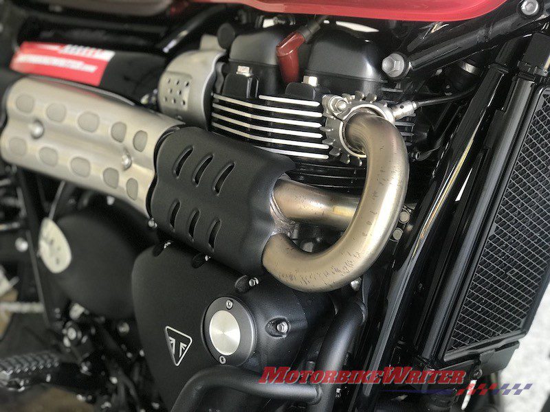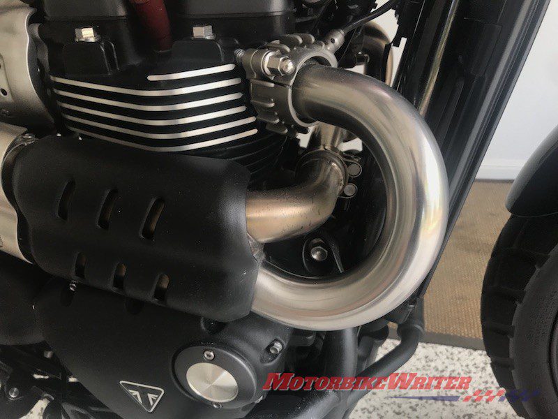 So he sent another dodgy package and suggested we try it on the badly oxidised pipes of our Triumph Street Scrambler.