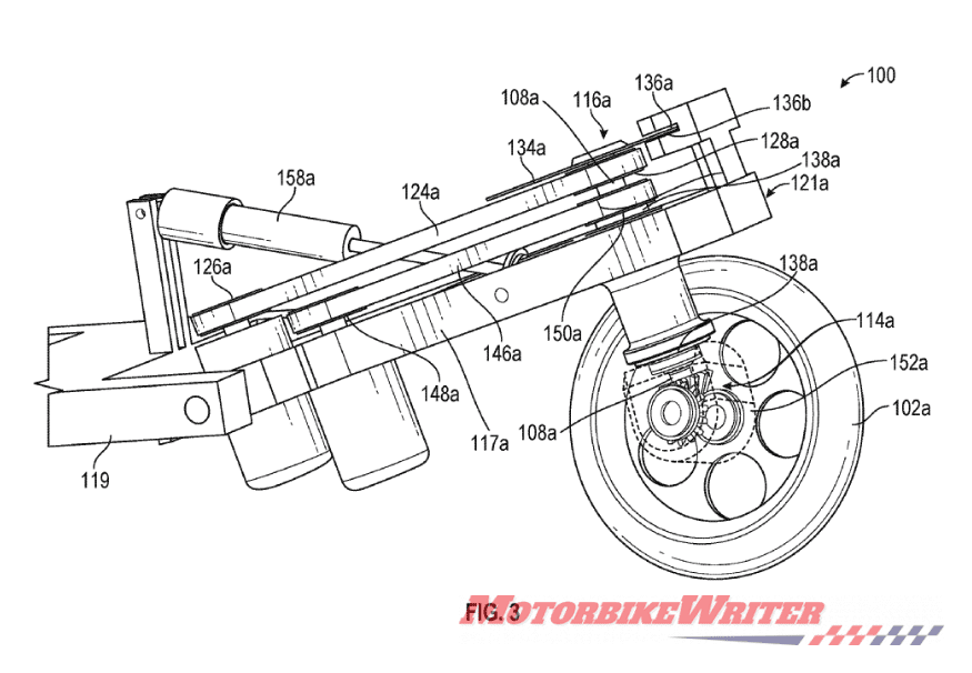 The patent application says: “The control loop stabiliser may include sensors for detecting balancing input. The balancing input may include information indicative of the linear velocity and angular velocity of the robotic motorcycle, the linear velocity and angular velocity of each wheel, and/or the orientation of each wheel.”