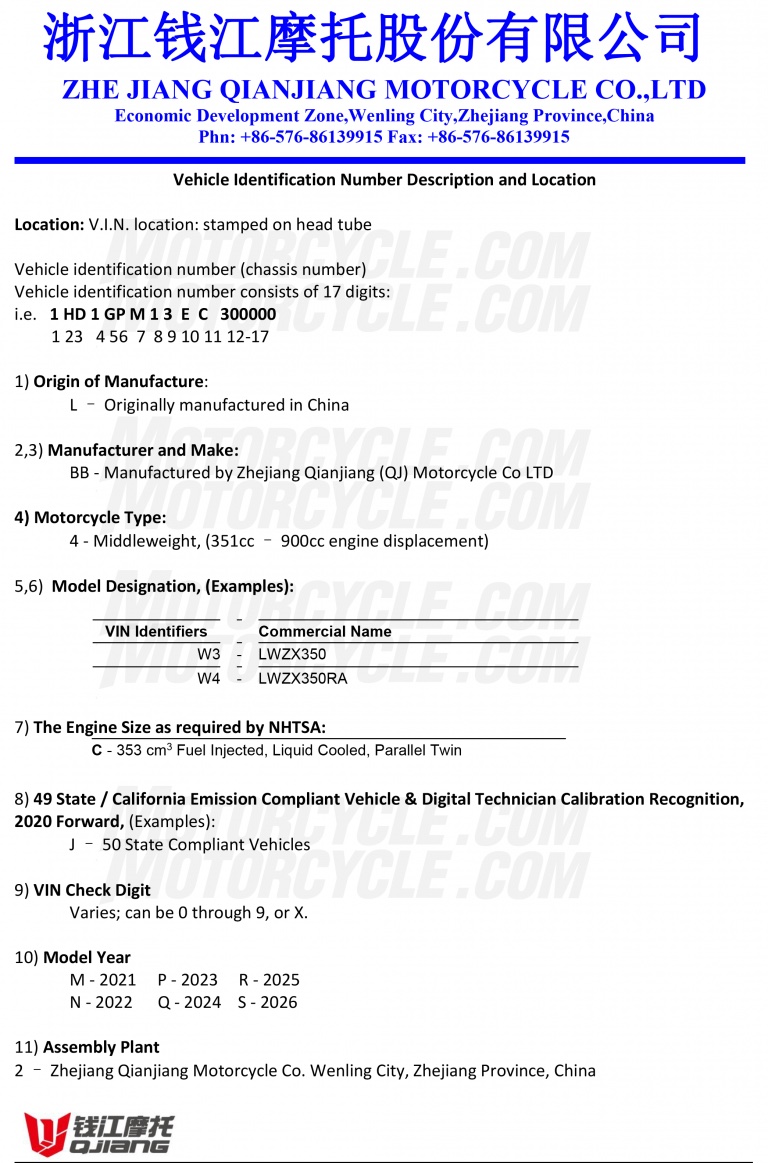 “This VIN decoder pattern does not match Qianjiang’s typical VIN structure. It does, however, match Harley-Davidson’s.”