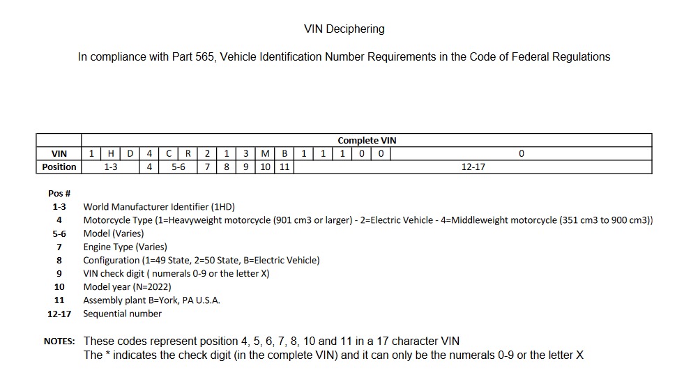With the VIN structure matching H-D’s formulae to a tee, we’ve got the following facts lined up: