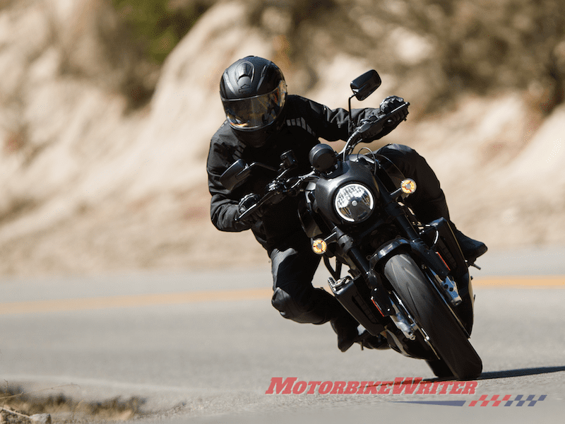 And while the Streetfighter is expected to have much more lean angle than we are used to on Harleys, the photos don’t really show it cranked over to the max.