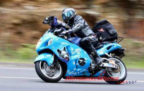 Fastest motorcycling dog in the world (283km/h at Eastern Creek);