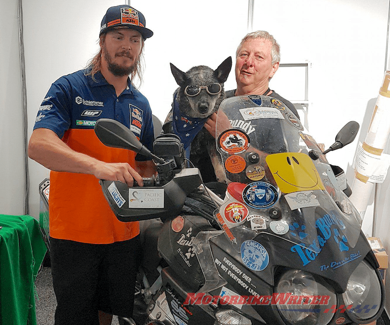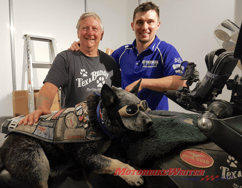 Tex and his previous dog Cash were inducted into the QBE national hall of motorcycling fame in 2006, the same year Bundy was born.