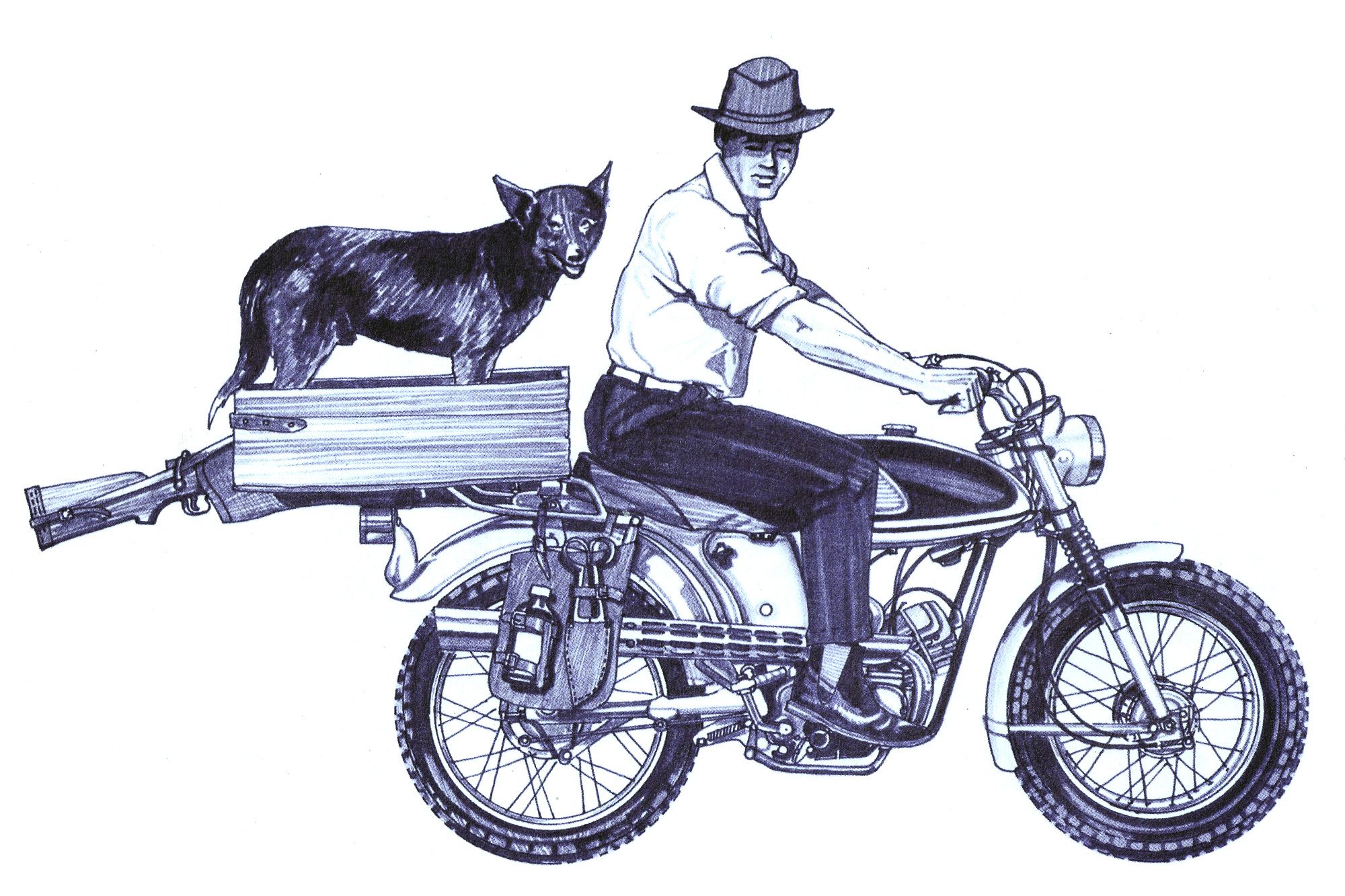 These ‘Ag’ bikes from the likes of BSA and other overseas firms were specially geared to allow riders to meander along while checking fences, rounding up sheep and to move cross country at the same speed as those on foot.