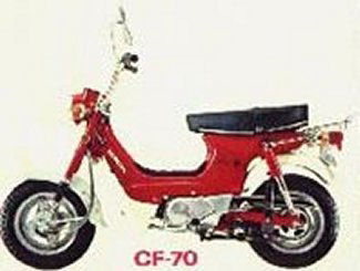 Share CF70 Chaly ENGINE N/A DRIVETRAIN Tire: 3.50-10 CHASSIS / SUSPENSION / BRAKES N/A DIMENSION N/A OTHER CF70 Image Gallery