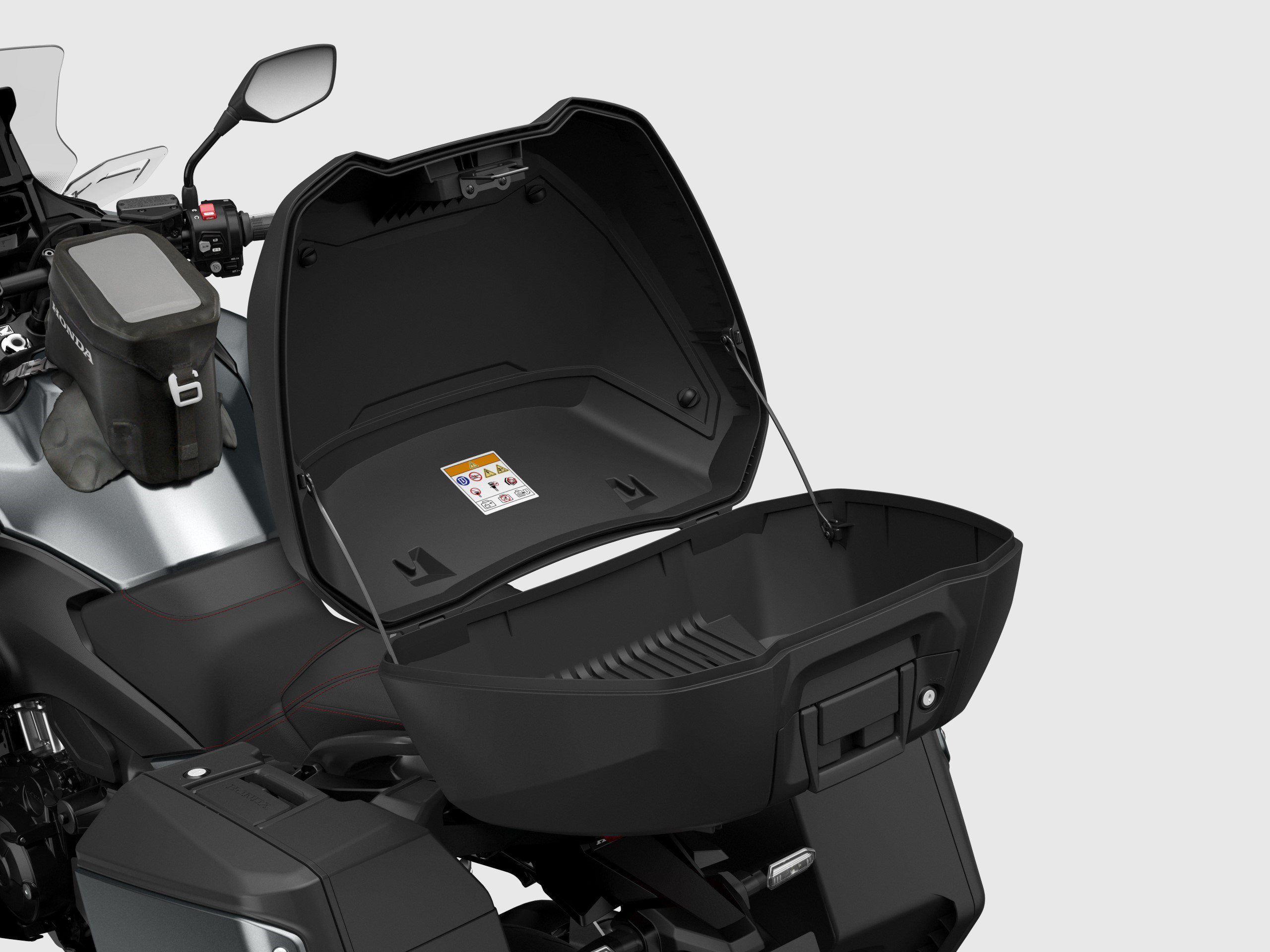 To complement the power aesthetic, Honda has dressed the NT1100 in a set of panniers – narrow by comparison to the Africa Twin – alongside the potential for different bag setups via Honda’s proffered Urban Pack Voyage Pack and Touring Pack.