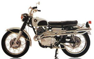 Share 1965-68 Scrambler 305 (CL77) Colors: Blue Red Black The fuel tank, side covers, and fenders were silver The frame, upper fork, and headlight shell were painted one of the basic colors The fuel tank had a rubber knee pad The two exhaust pipes were mounted on the left side and converged into a single muffler The engine was a 305cc 4-stroke OHC wet sump parallel twin with dual carburetors The transmission was a 4-speed The serial number began CL77-100001. CL77 Image Gallery