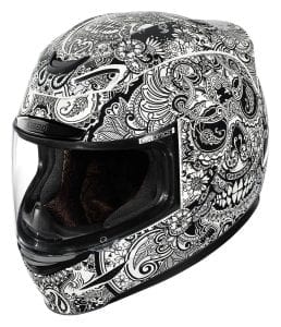 The Airmada helmet is one of the flagship helmets from Icon. The Chantilly graphics are very ornate and look really cool. If you love having elaborate graphics on your helmet, you will enjoy wearing this helmet in both black and white variations.