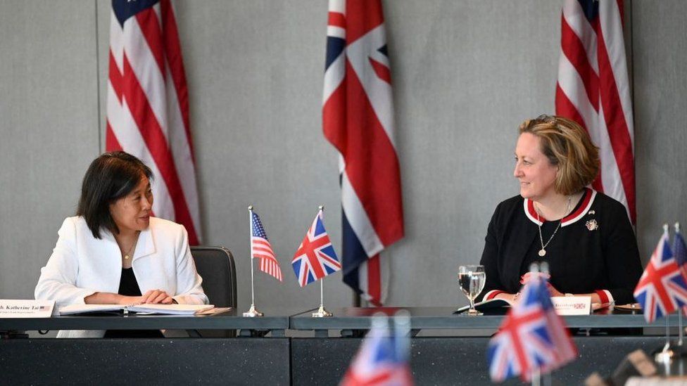 “The pact, which comes after Raimondo met with Britain’s trade minister, Anne-Marie Trevelyan, also will end Britain’s retaliatory tariffs on iconic American goods, including Harley-Davidson motorcycles, bourbon whiskey, Levi Strauss blue jeans, and cigarettes,” continues the report.