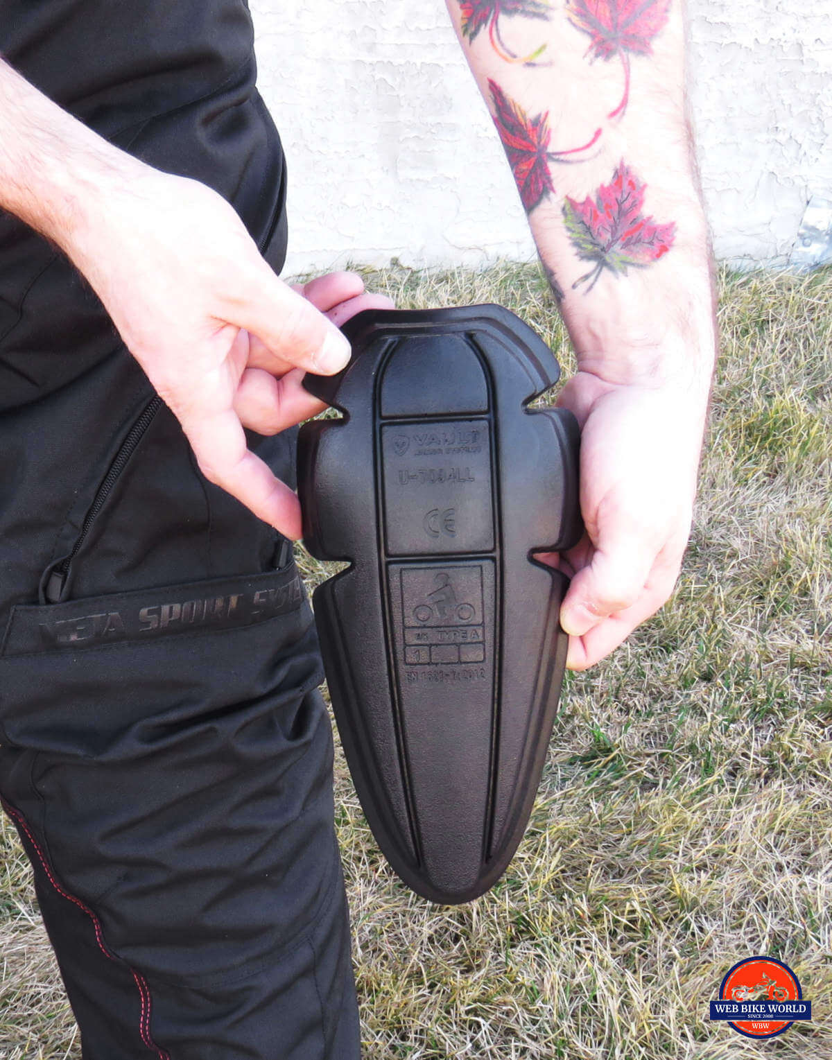 The CE Level 1 armor included is nothing special, but not the worst armor I’ve encountered in riding gear. It’s made from solid rubber and I’m confident it would make some difference in a crash.