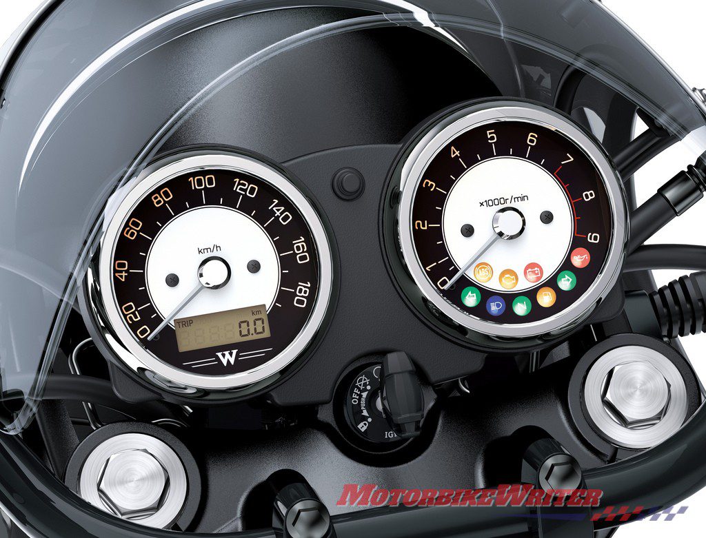 Despite speculation the W800 would be scrapped because of tougher Euro4 emissions laws, the engineers have managed to lean down the air-cooled 773cc engine without resorting to liquid cooling.