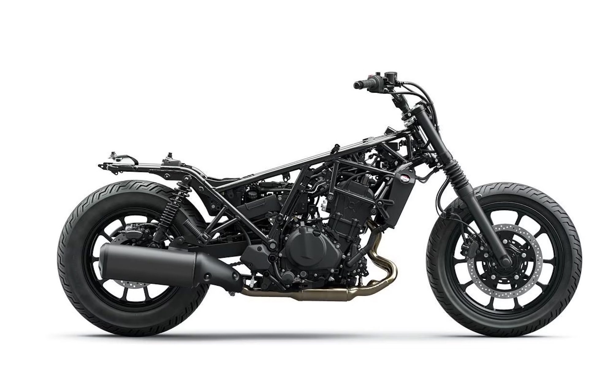 Elsewhere on the Eliminator, a six-speed transmission is nestled inside the all-new tubular trellis chassis, which also hosts a slip-and-assist clutch, a non-adjustable conventional fork mated to a rear twin shock, and a die-cast box swingarm (via Ultimate Motorcycling).