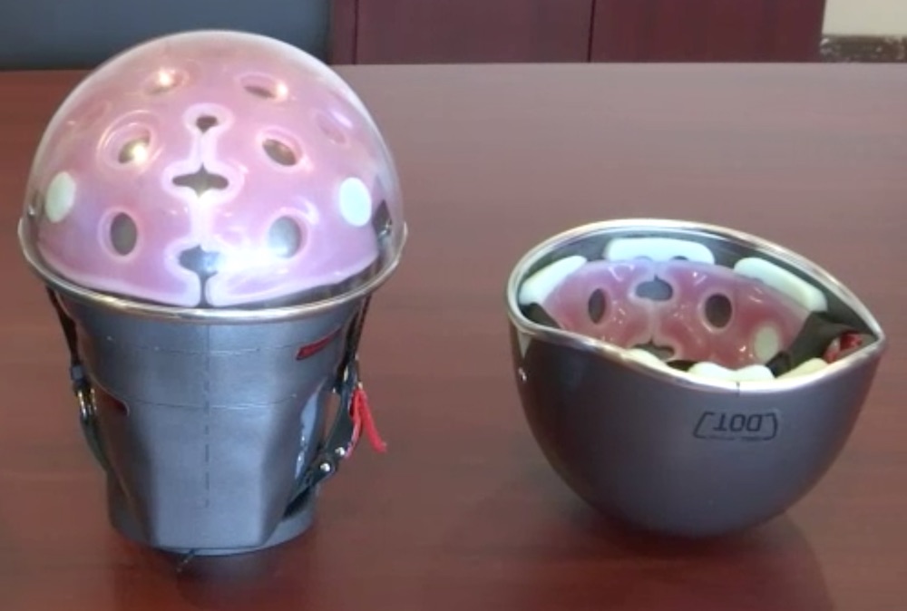 The impact is also absorbed at a smoother rate of deceleration, reducing shock to the brain.