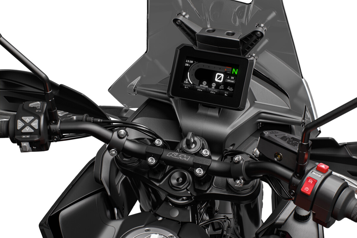 All of this is complemented by a higher windscreen – inspired by the KTM 890 RALLY – as well as a hardy 5” TFT with updated software.