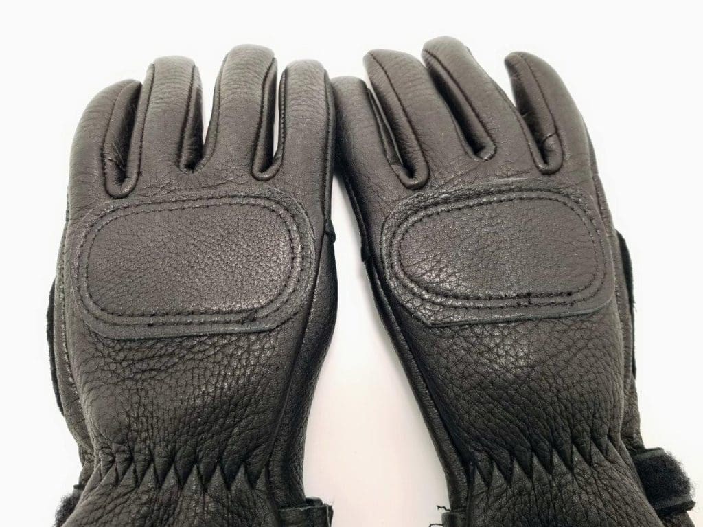 They are much more reasonably priced at $87. The Aerostich gauntlets are shorter than these DeerSport ones. Aerostich uses elkskin on the palm side and deerskin on other parts which is strangely the opposite of Lee Parks DeerSports’ design. They have protective pads on the knuckles and an extra oval shape patch on the palm.