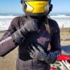 I love the length of the cuff. It measures five inches from the wrist and is two inches longer than my Women’s Alpinestar Stella SP-8 gauntlets. With two velcro closures at the wrist, the opening of gloves are easily adjusted even to my skinny wrists and completely covers the jacket sleeve.