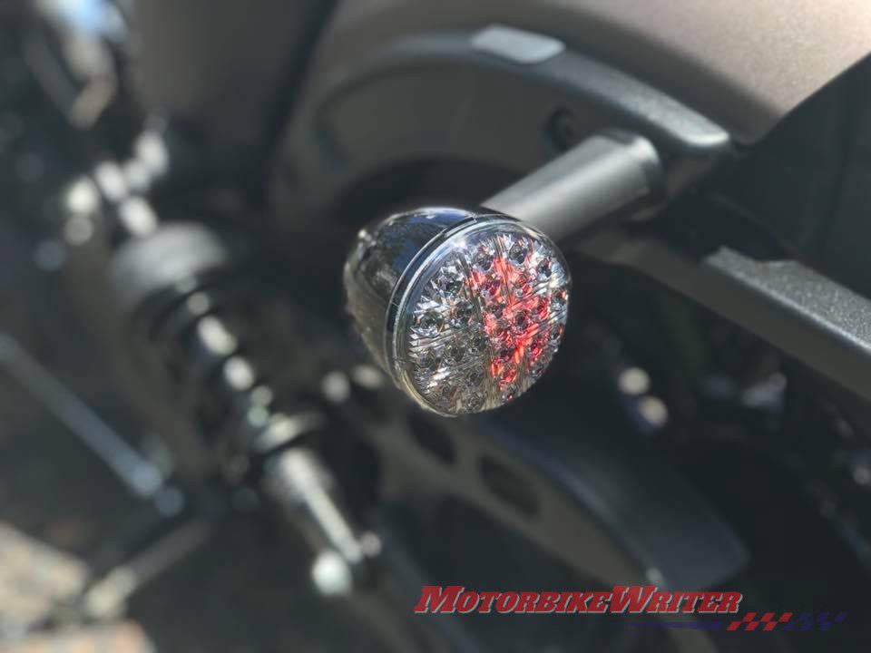 The American PR shots showed bar-end mirrors, but Australian Design Rules knocked that back and it comes with standard mirrors.