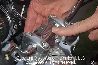 Installing the Bullet Billet is about as easy as it can be. The only problem I had, which I anticipated before we ordered it, is that the Bullet is slightly too long for the low GT1000 bars. So we had to tilt it back slightly to fit between the handlebars and the triple clamp, which works fine.