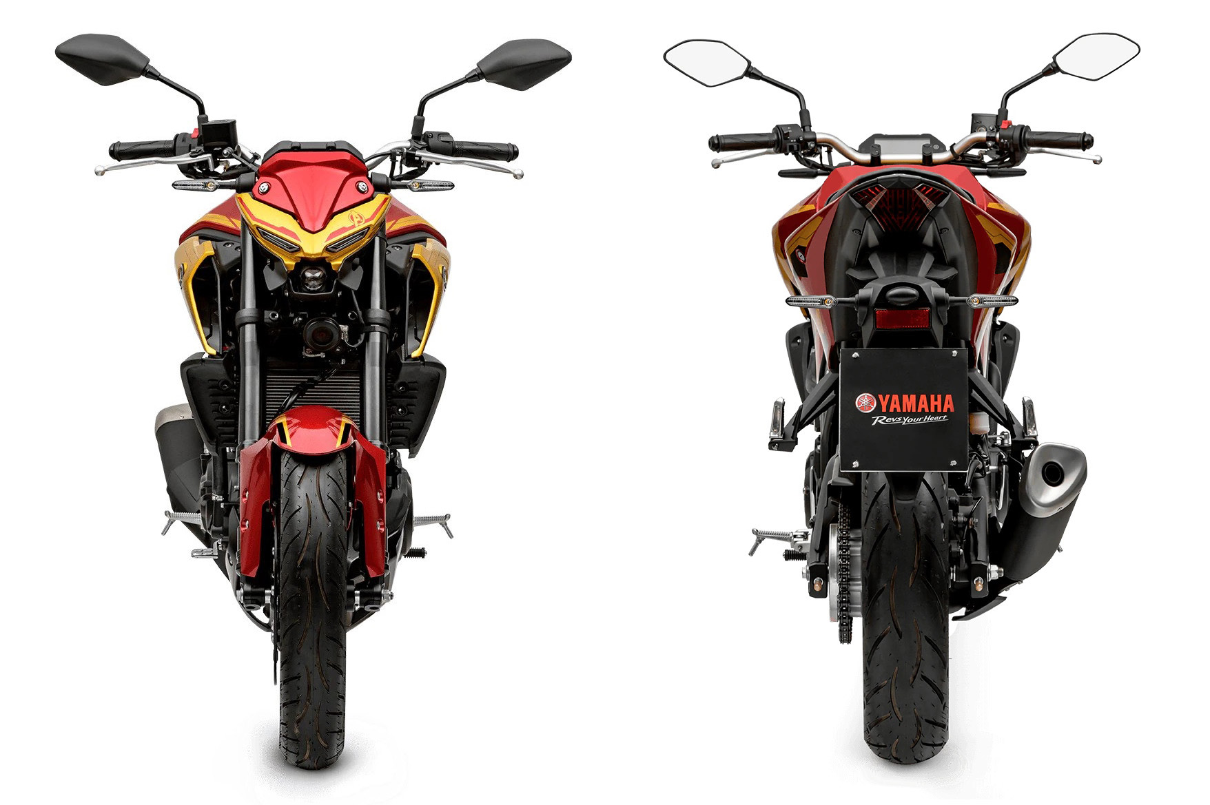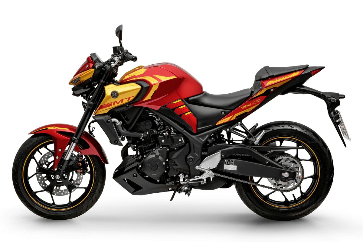 MotoPinas states that Yamaha’s new Iron Man Edition MT-03 features the ‘Avengers’ logo above the LED DRL, a tank pad with the ‘Iron Man’ logo, and yellow rim stickers.