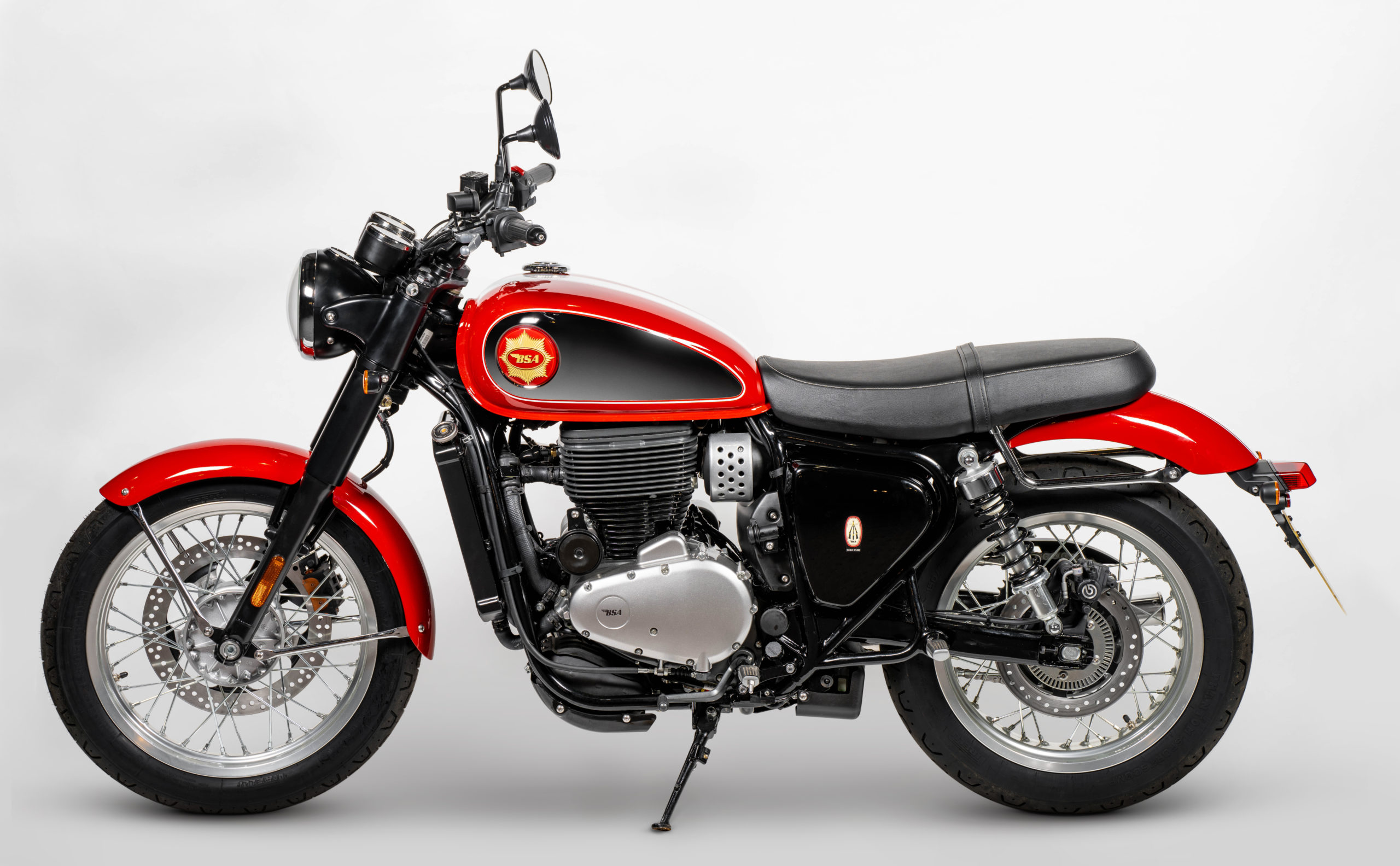 To support the launch, Merlin has, according to the press release, “provided a Hixon and an Alton leather jacket, co-branded with embroidered BSA logos to the arms and back of the neck.”