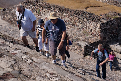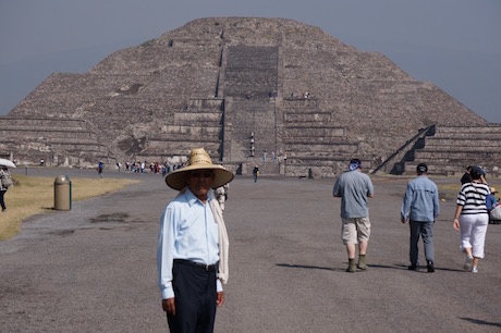 The tour starts outside Mexico City with its population of 21 million at a place called Teotihuacan whose biggest drawcard is the two ancient Mayan pyramids.