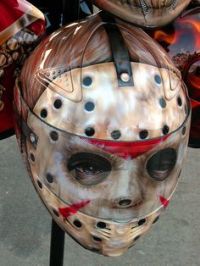 Like any great scary movie character, mimicking their mask/face on a motorcycle helmet lets you play the role and scare as many children as you can ride by in a day. School busses and minivans are your perfect targets.