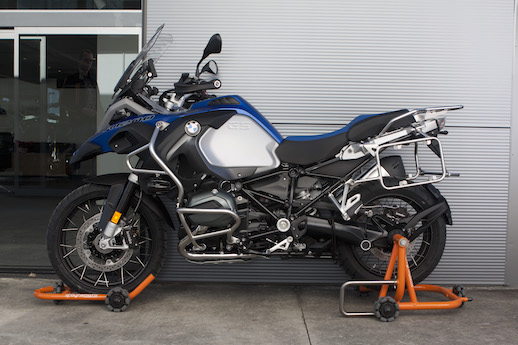 Another unique feature is the outrigger on the right hand side of the double-sided swingarm stand has a closed loop which means you don’t have to balance the bike with one hand while aligning the stand with the other.