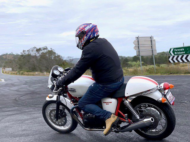 So, how’s it worked out? Pretty damn well. Living where I do, I’m spoilt, with just three sets of traffic lights between home and the cracking roads north-west of Bris Vegas. Think Mts Nebo, Glorious and Mee and beyond. I set my sights low to begin with, though, reacquainting myself with the balance and dynamics of riding and sticker to the flatter, quieter roads through Bunya, Armstrong Creek, Bullocky’s Rest, etc. A deep vein of Triumph DNA runs through the Thruxton (twin-cylinder, twin-shocks) but the addition of electric start, fuel-injection and twin discs has endeared it with a new level of practicality and safety.