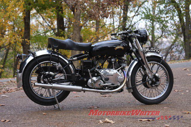 It was the most expensive bike sold at auction until Australia Day this year when a 1951 Vincent Black Lightning on which Jack Ehret set an Australian speed record was bought at the Bonham’s annual Las Vegas motorcycle auction for a record $US929,000 ($A1,155,000, €748,500) by an unknown collector who is returning the bike to Australia.