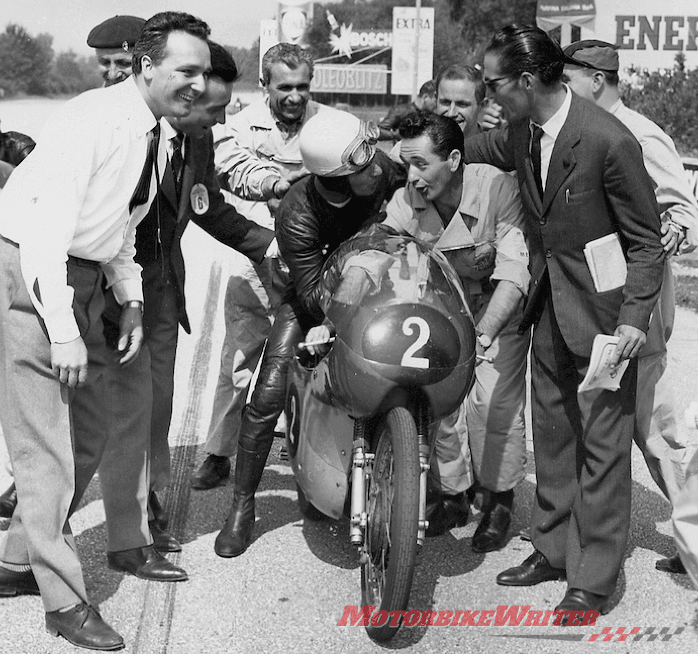 Count Domenico Agusta had a knack for hiring the best riders, most of which became legends of the sport: Franco Bertoni, MV’s first rider, followed by Arcisio Artesiani, Carlo Ubbiali the “flying chinaman”, Leslie Graham, Cecil Sandford, Fortunato Libanori, John Surtees, Mike Hailwood, Gianfranco Bonera, Giacomo Agostini and Phil Read. Throughout the 30 years of the Agusta era, the history of their victories intersects with the launches of equally legendary and successful MV Agusta production models.