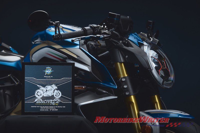 As a gauge, the Brutale 1000 RR costs $A52,190 and the limited-edition Brutale 1000 RR Serie Oro is $A68,880.