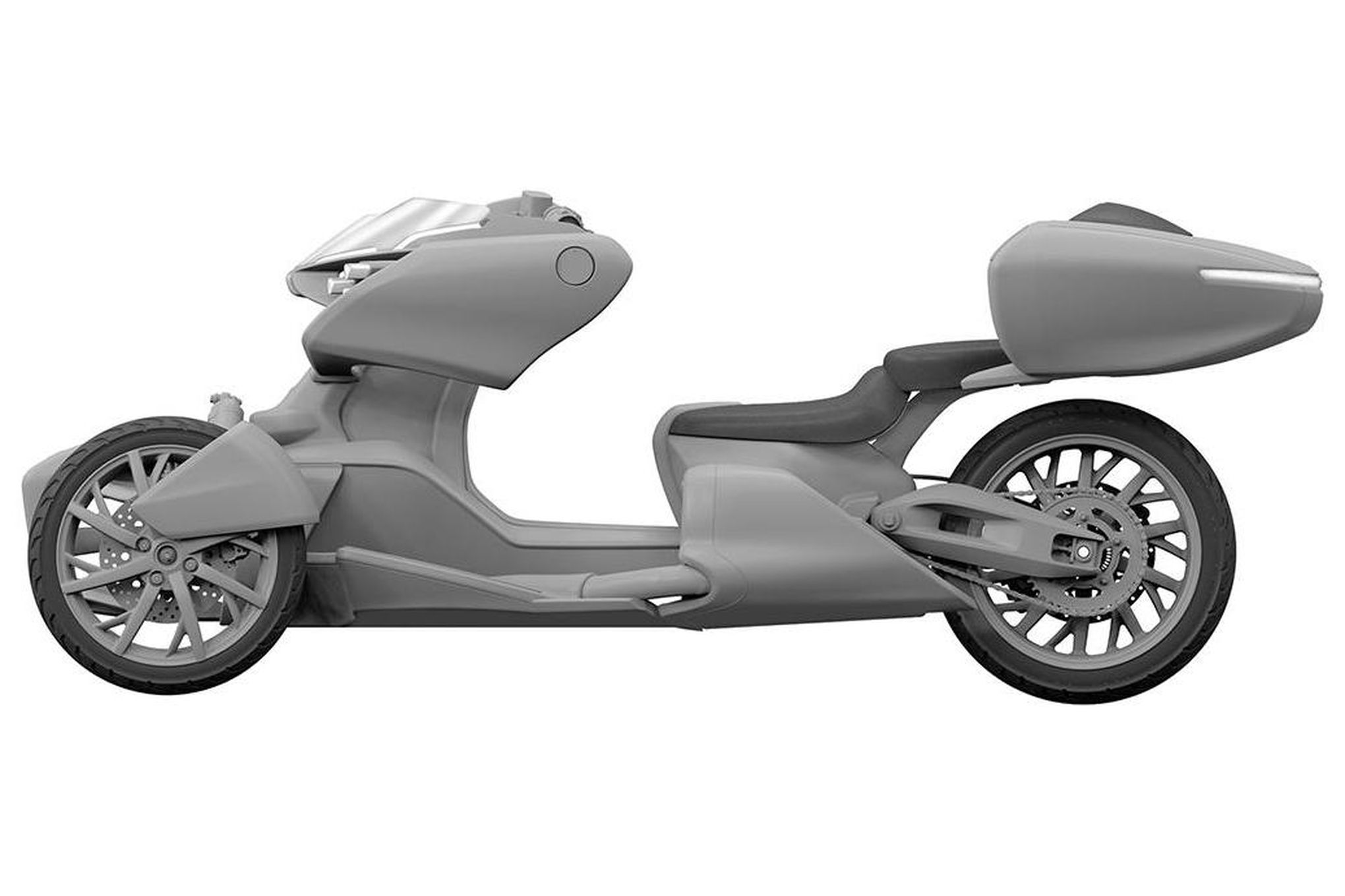 This is similar to the patent that I showcased recently that I called a new T-Max design. That patent may not have been for a T-Max but for this trike instead. There’s also the chance that the design I’d previously shown could be for a completely different trike than the one you see here.
