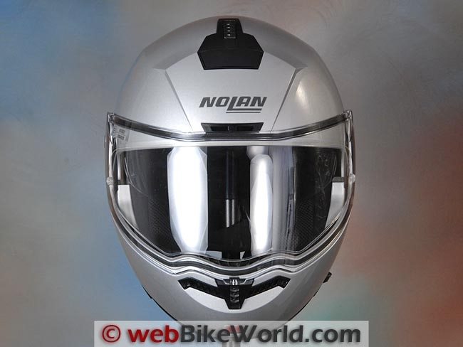 The size large N-104 is also slightly short in the front-to-back dimensions. During our evaluations, both of us found that our chins just touch the inside of the chin bar when the helmet is on and the rotating flip-up visor is closed.
