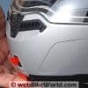Slide the chin bar button up and the wing-shaped front vent opens. The vent seems large, but there are no direct vent channels through the chin bar.