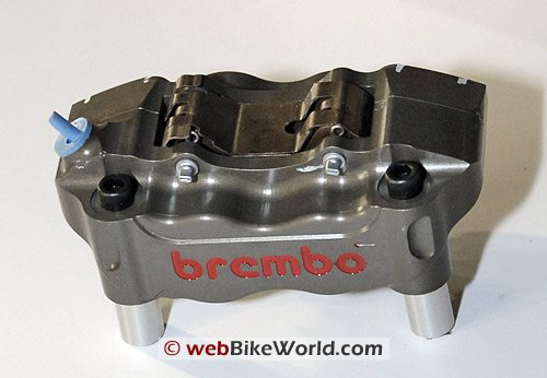| Front brakes: | Double disc. Brembo system, twin semi-floating hi carbon stainless steel discs, Brembo 4 piston “Gold Line” axial callipers |