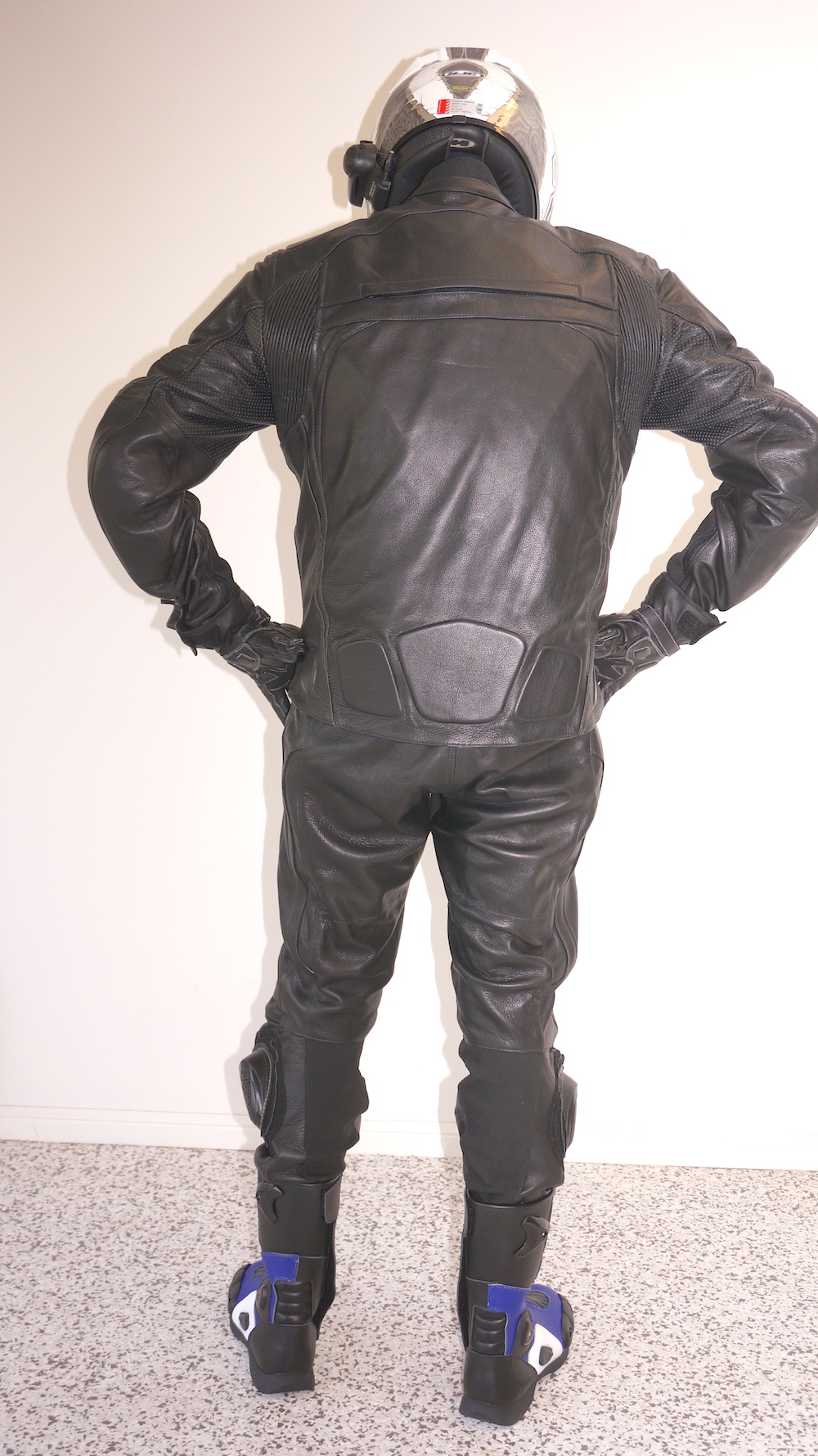 But here is the most ridiculous thing about the leathers; the knee sliders are right around the side of the shins. They look ridiculous and, unless you have a radical style, totally ineffective.
