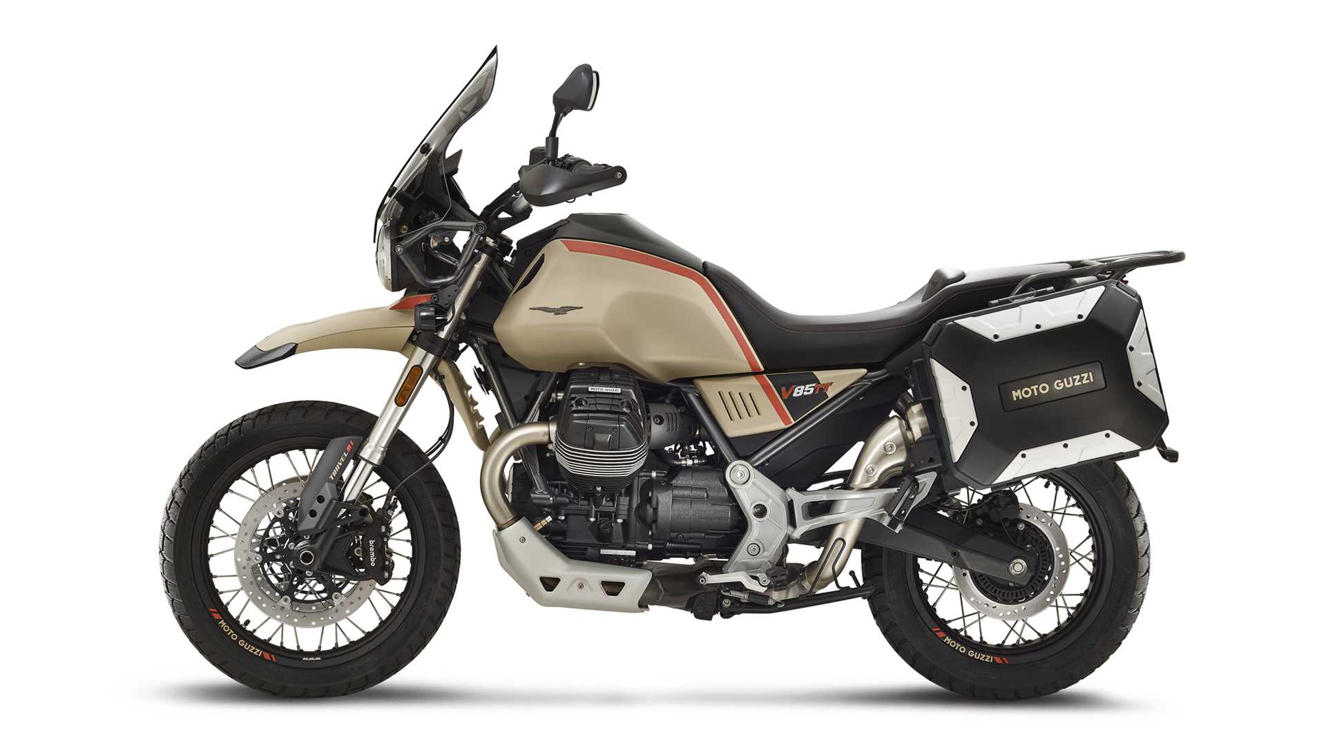 The bike is more or less the same otherwise. It has the same engine, same size gas tank, and the same chassis and controls. The 853cc engine puts out 80 hp and 59 lb-ft of torque. The bike also gets Brembo brakes, ABS, three riding modes and Moto Guzzi’s MIA multimedia system. The price of the bike is yet to be announced.